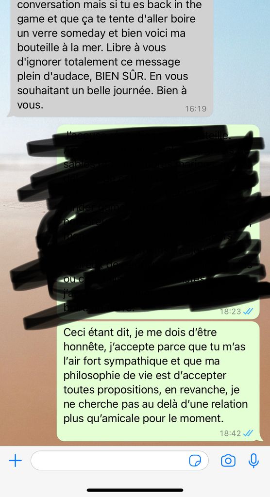 Bonjour je suis back sur la dating scene, j'espère qu'on pourra go boire un drink someday xD