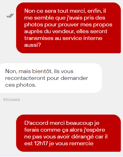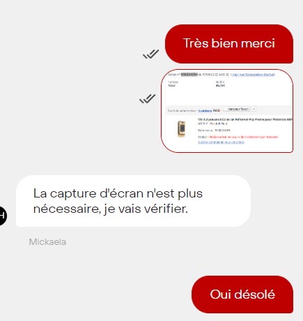 La meuf que le robot tchat de Rakuten m'a placé dans la discussion afin que je fasse ma réclamation