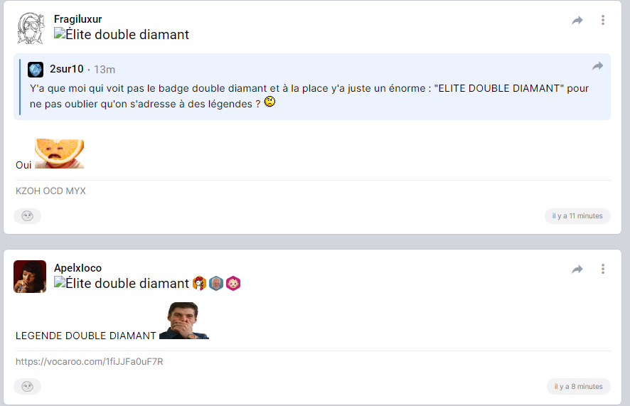 Y'a que moi qui voit pas le badge double diamant et à la place y'a juste un énorme : "ELITE DOUBLE DIAMANT" pour ne pas oublier qu'on s'adresse à des légendes ?