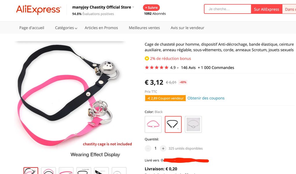 Essaie de taper " Chastity cage Strap" dans la barre de recherche sinon .