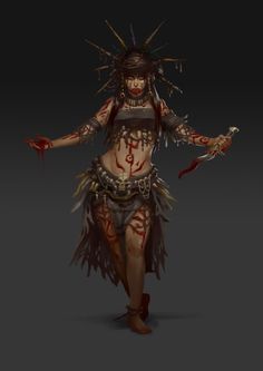 Il vu, alors une femme aux multiples colliers et aux tatouages étrange sur le visage. Elle étais a demi nue, comme tout le village, mais les quelques vêtement qu'elle portait étais de qualité supérieur a ceux des villageois. Il étais brodés d'or et dessinaient des motif complexe. Les locaux s'écartais d'elle, certain s'abaissa voir s'inclina face a cette femme qui étais d'une beauté a la fois exotique et envoutante.