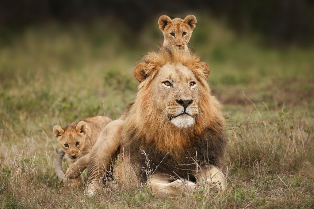 Photo d'un lion avec sa petite famille