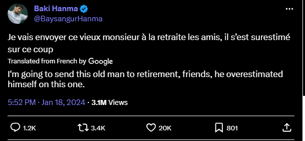 Je vais envoyer ce vieux monsieur à la retraite les amis, il s’est surestimé sur ce coup