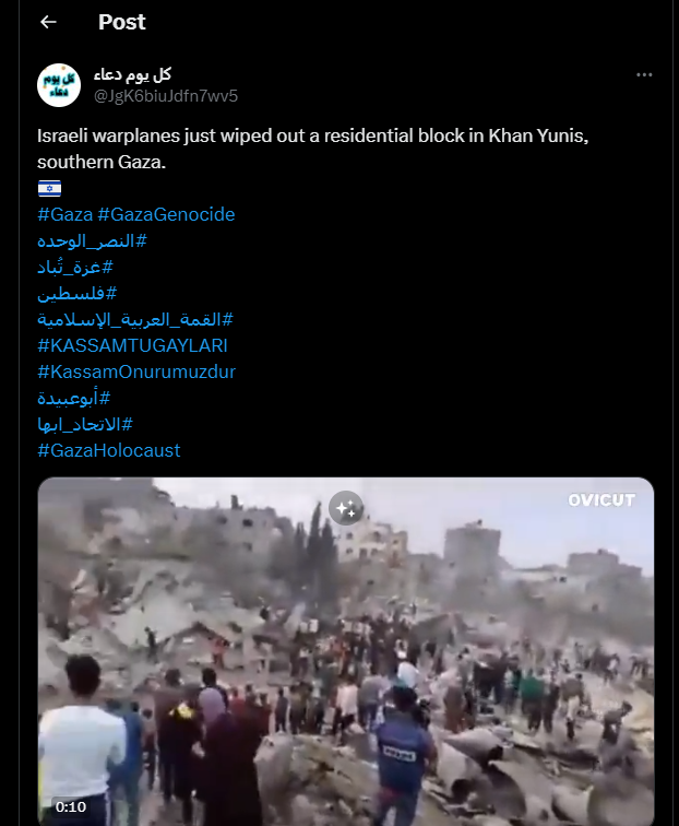 Les avions de guerre israéliens viennent de détruire un bloc résidentiel à Khan Yunis, au sud de Gaza.