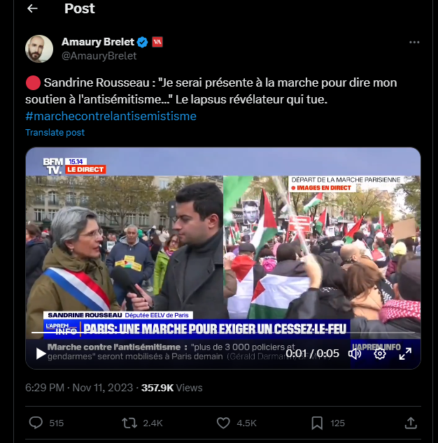 🔴 Sandrine Rousseau : "Je serai présente à la marche pour dire mon soutien à l'antisémitisme..." Le lapsus révélateur qui tue. #marchecontrelantisemistisme