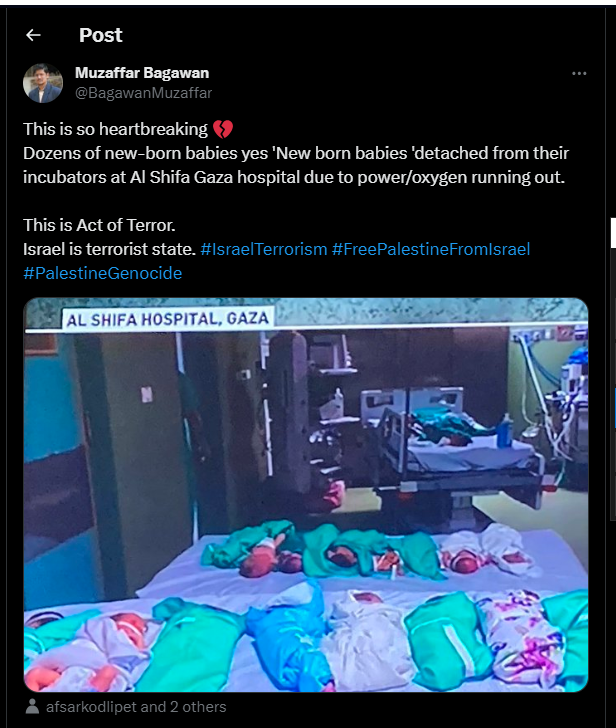 Des dizaines de nouveau-nés oui « Nouveaux-nés » détachés de leurs incubateurs à l'hôpital Al Shifa de Gaza en raison d'une panne d'électricité et d'oxygène.