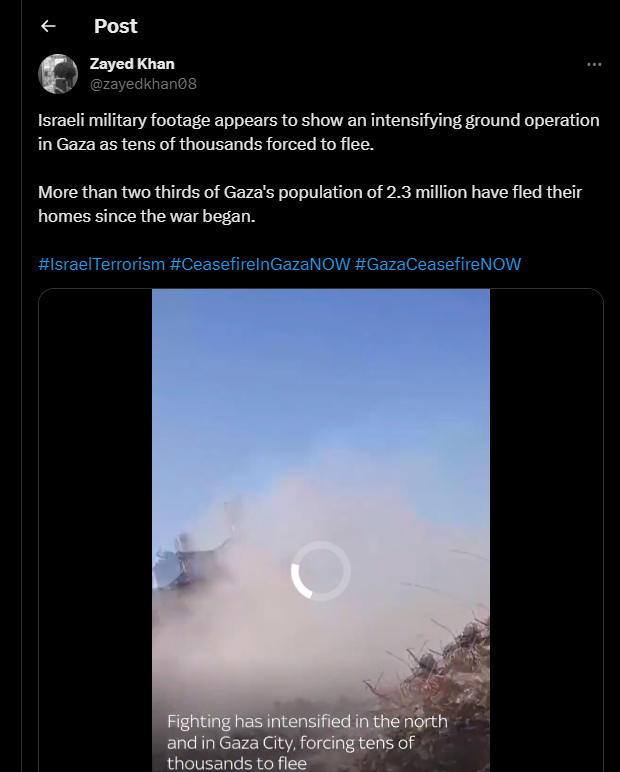 Les images militaires israéliennes semblent montrer une intensification des opérations terrestres à Gaza alors que des dizaines de milliers de personnes sont contraintes de fuir.