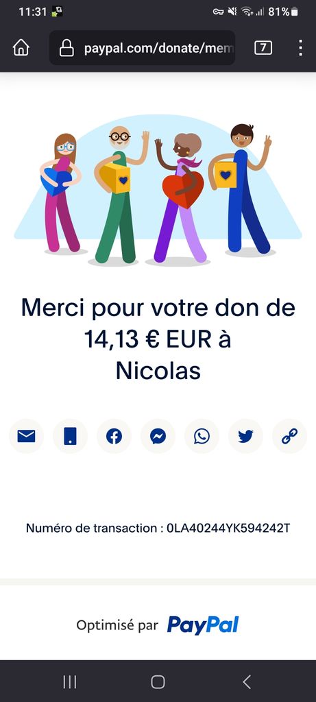 J'aimerais beaucoup aider mais je ne peux pas pour le moment (Black Friday + cadeaux de noel et anniversaires). Si la campagne de don continue en décembre, sans problème je pourrais donner un peu.