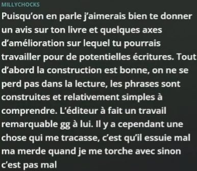 Le premier déjà m'avait marqué par sa qualité déplorable, mais visiblement c'est ce genre de contenu médiocre qui marche dans le monde de la ((littérature moderne))), donc si ça se vend bien tant mieux pour lui écoutes