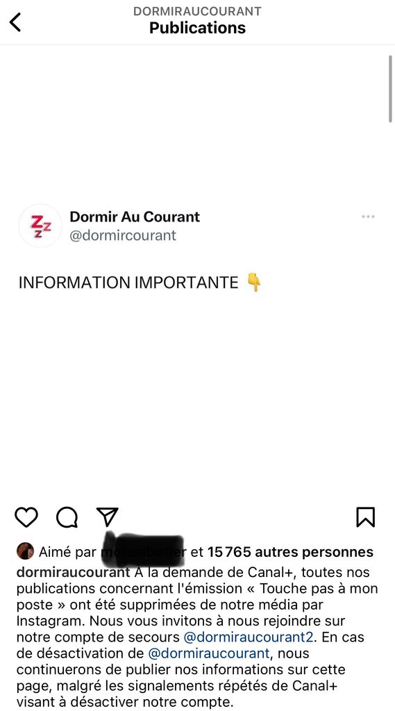 Mon post sur le compte d’infos Instagram qui a été menacé par Canal+ afin de supprimer tout leur post sur Tpmp a été deleted par la modération et ce n’est pas une ddb de khey j’ai vérifié