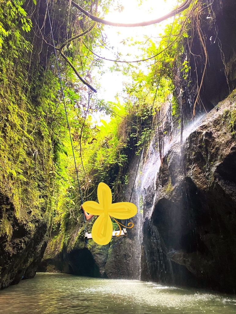 Et go cascade bien sûr, genre une photo que j'ai prise là bas d'une balançoire avec des cascades dans une crevasse, c'était génial bordel :