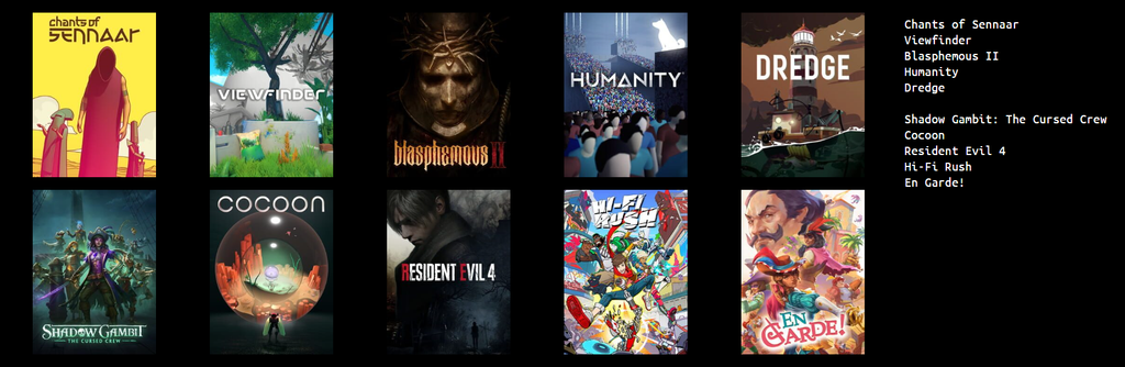 A la place, je te propose mon top 10 des jeux que j'ai faits et découverts en 2023.