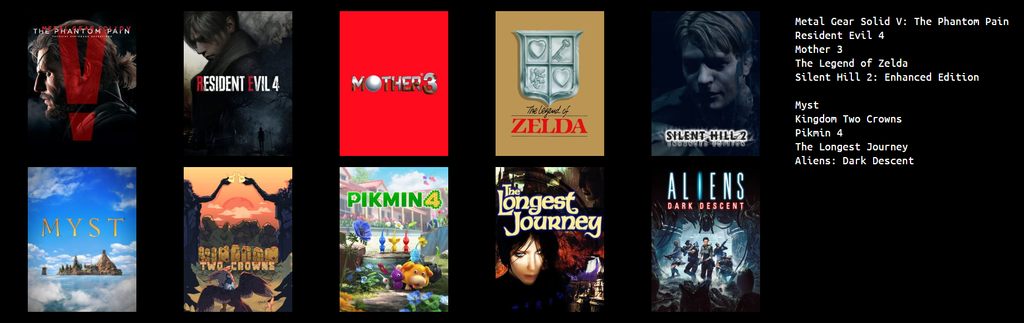 J'ai pas fait beaucoup de jeux de cette année, enfin oui et non puisque certains ne méritent pas d'être dans le top ou ce sont juste des ressorties de vieux jeux...