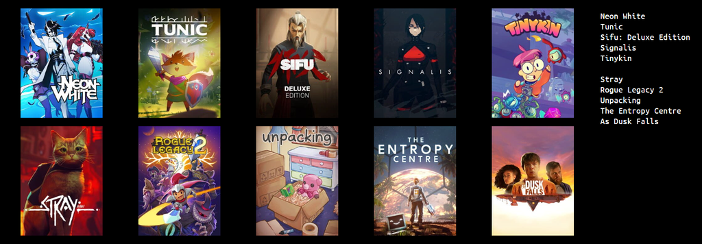 Stray techniquement c'est 2022 , meme si j'imagine que tu fais référence au portage xbox vu le reste de ta liste