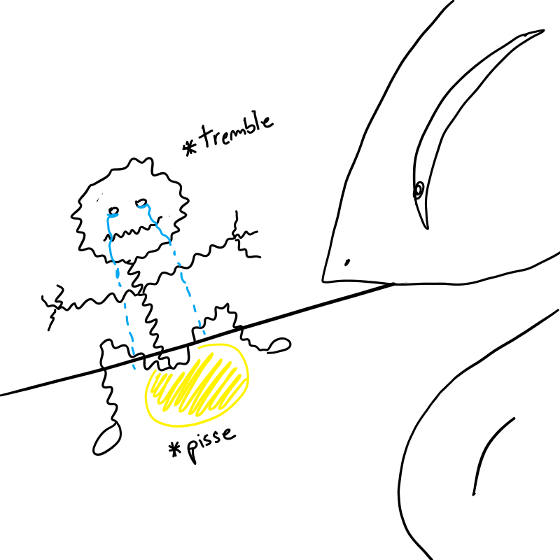 *Celestin est PA-RA-LY-SÉ........il tremble comme un diapason....et s'est pissé dessus
