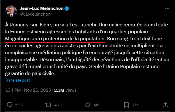 Et ce n'est pas moi qui le dis Gilbert si tu mes lis hein, mais le grand FDP de Mélenchon qui lui donne ce droit aux racailles :