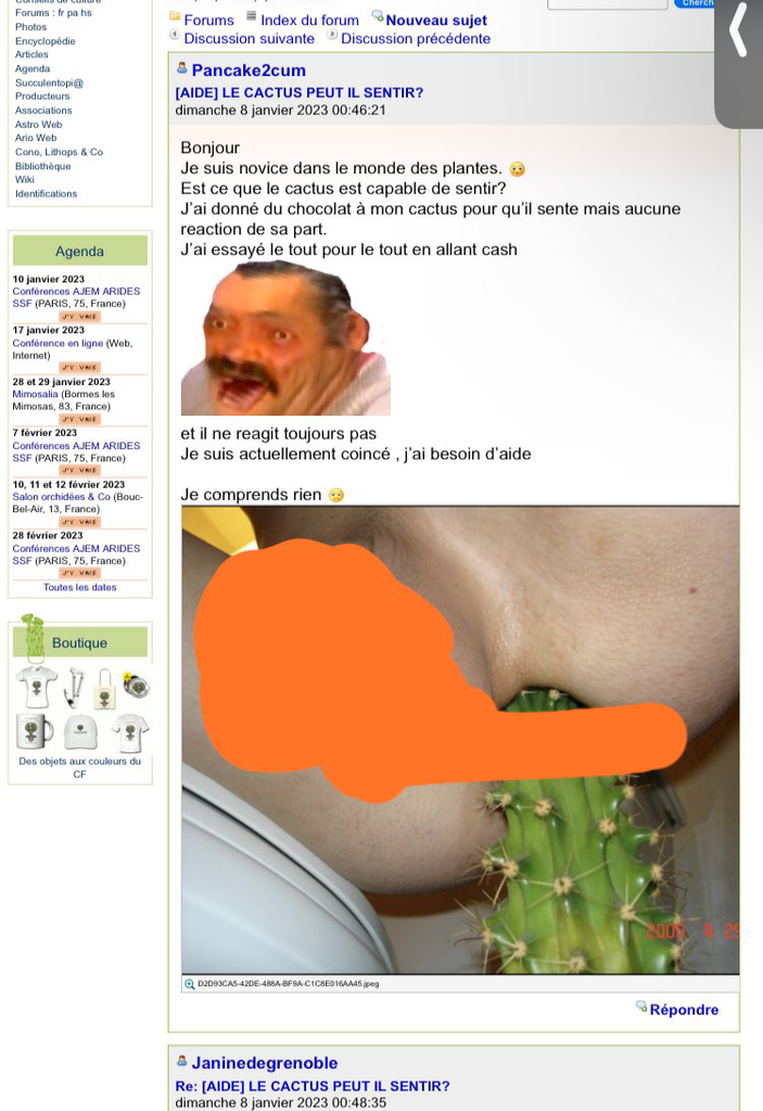 5) toujours sur le forum cactus, partagez vos prouesses avec Gérard et Huguette, retraités de plus de 60 ans et expert amateur en botanique de Cactaceae