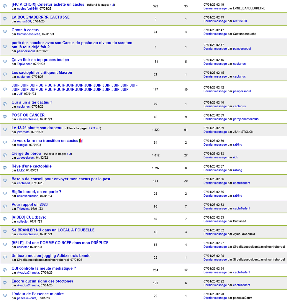 Je suis le khey qui a lancé le raid sur le forum cactus, content de voir le délire reprendre ici
