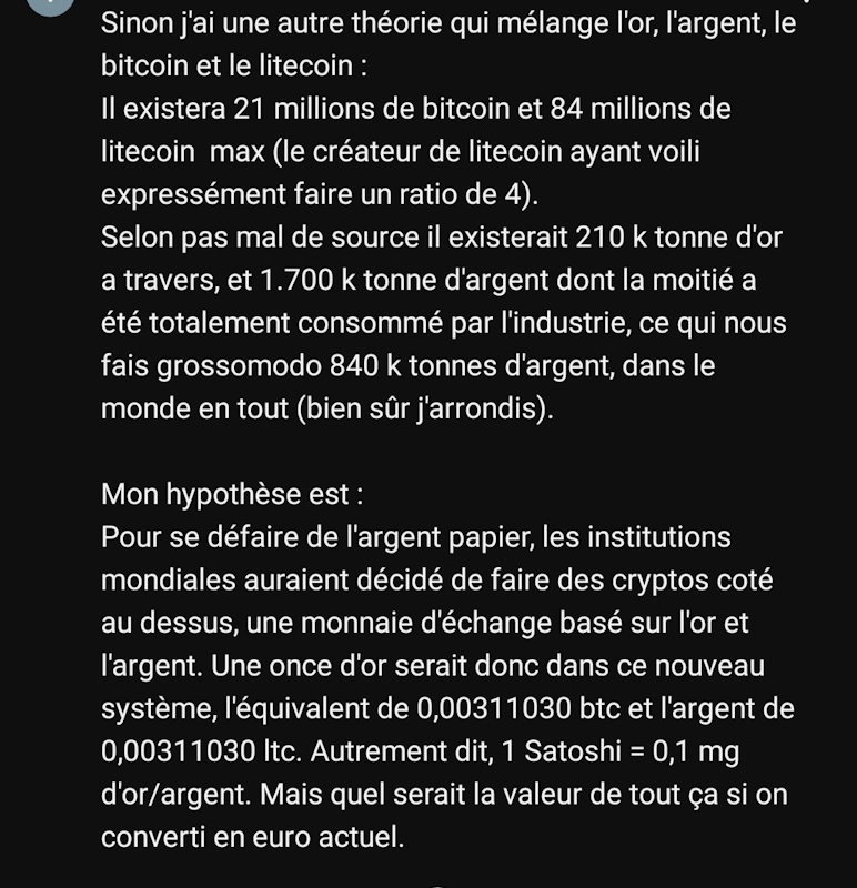 Il faut jouer avec les proportions, d'où cette théorie qui montre qu'il y a une proportion or/btc et argent/ltc, et donc un équivalence induite par ces proportions.