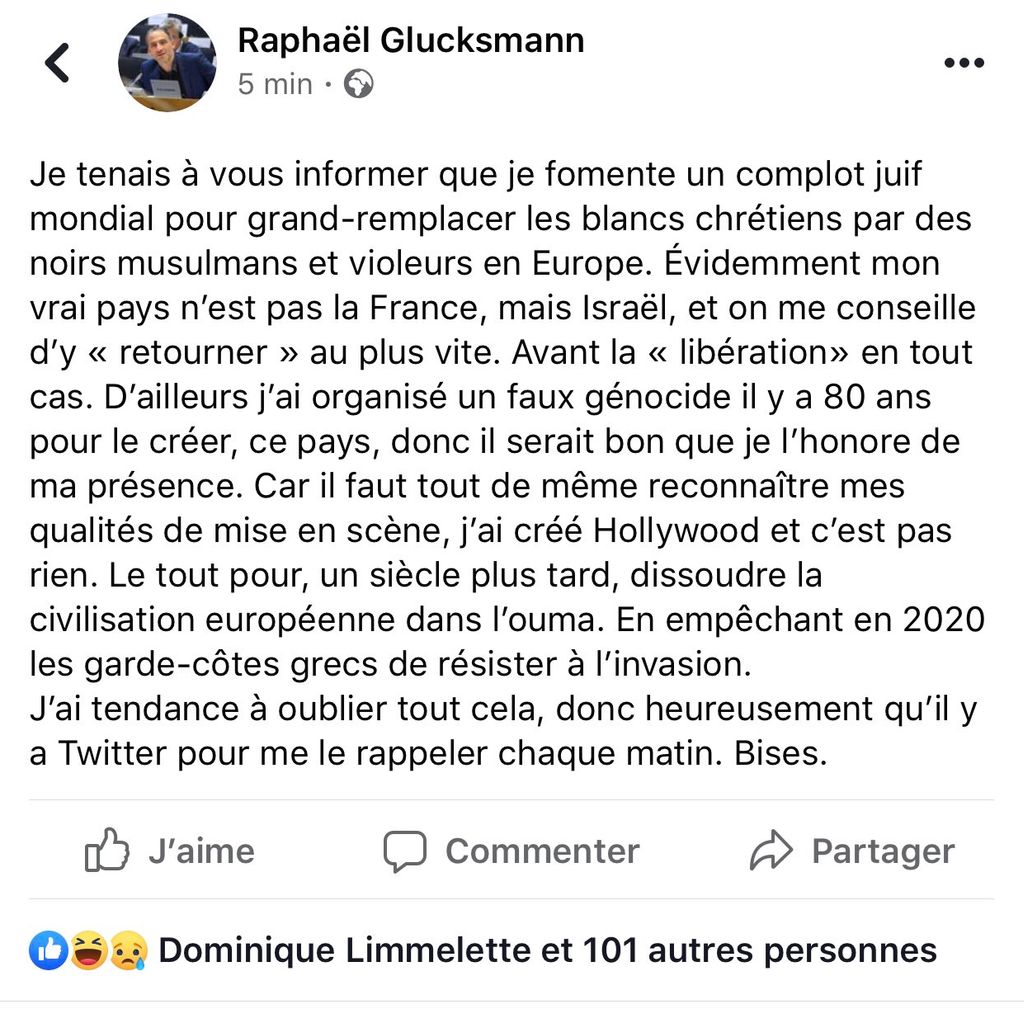 Il dit ça mais le lendemain tu lui tend un micro, il te refait la promotion de l'invasion migratoire et te traîne dans la boue n'importe quel patriote
