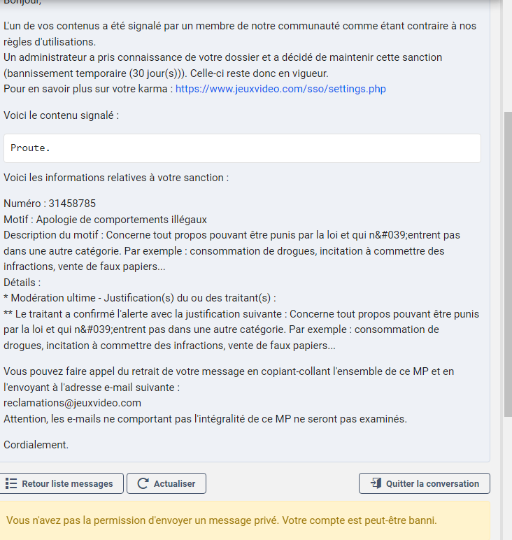 Quel idée aussi d'exprimer une opinion sur un site contrôlé par le crif la stasi la dgsi et un administrateur trap sous anti-d.