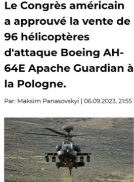 Cette problématique de géopolitique du gaz est prégnante avec le souci de l'Union européenne de retrouver des sources d'énergies à des prix compétitifs tout comme le fut le gaz russe passant par Nord Stream 1 et qui aurait pu passé par Nord Stream 2. Le président polonais Duda compare maintenant l'Ukraine à une personne désespérée qui se noie et qui veut entraîner avec elle son sauveur. L'objectif de la Pologne qui est d'être le premier alliés des américains en Europe a marché. Le second est de participer au futur dépeçage de l'Ukraine pour récupérer ses frontières d'avant 1940 et un accès aux 3 mers. Quand on connait non seulement les contentieux historiques entre la Pologne et l'Ukraine mais du jeu géopolitique entre l'est européen jadis sous la domination de l'URSS on ne peut que s'étonner de la maladresse du président ukrainien concernant la plainte à l'égard de la Pologne. D'autant plus que la Pologne est dans une situation pré électorale. Il y aura des élections le 15 octobre. Il pourrait y avoir un changement de majorité. Donc on a affaire à un gouvernement polonais sous pression interne mais aussi externe car les accords céréaliers qui ont été imposées par l'Union européenne. L'Union européenne a quant à elle manqué de rationalité sur le plan économique comme sur le plan géopolitique. L'origine de tout cela c'est la fin de l'accord céréalier en Mer noire. Les Russes ont décidé de mettre fin à cet accord puisque les conséquences par effet de rebond ou par effet de bande commence à être assez importantes. Pour revenir sur la Pologne je rappelle que c'est l'un des pays les plus actifs dans l'acheminement du matériel militaire de l'OTAN en Ukraine. 250 chars et 100 véhicules blindés ont été fournis par la Pologne à l'Ukraine. Sans oublier des fusils, des munitions et des missiles. Pour une aide militaire s'élevant à 2 milliards d'euros selon le président polonais Duda.