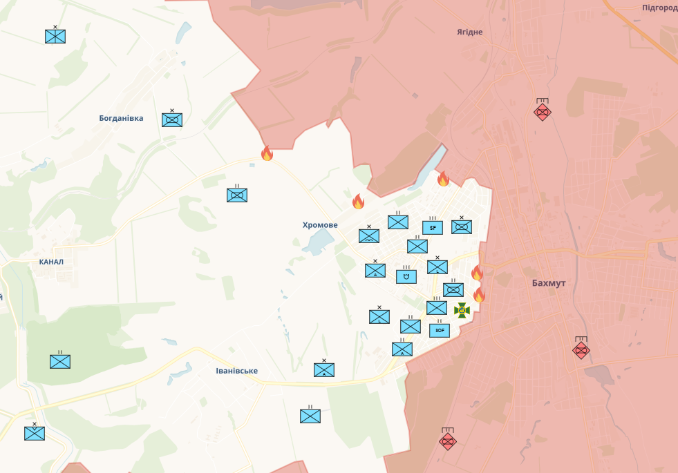 , oui tous les rapports, meme les moins avancés indiquent que les russes sont aussi a moins de 100 metres de la route d'ivaniske, si elle n'est pas deja prise, et si c'est le cas, les ukrainiens sont desormais totalement bloqués dans bakhmut
