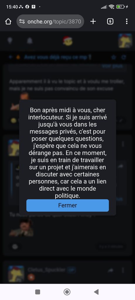 Apparemment il à vu le topic et à voulu me troller, mais je ne suis pas convaincu de son excuse