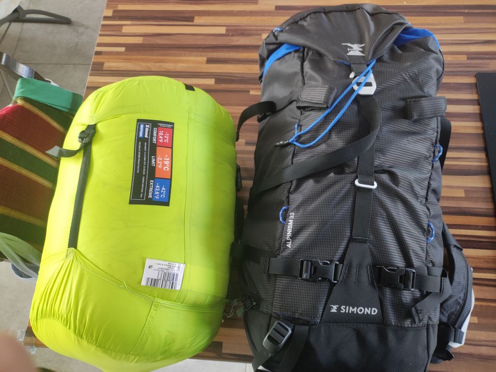 Ça c'est mon sac et mon fameux duvet simond a 320 balle