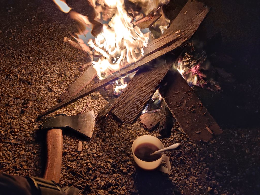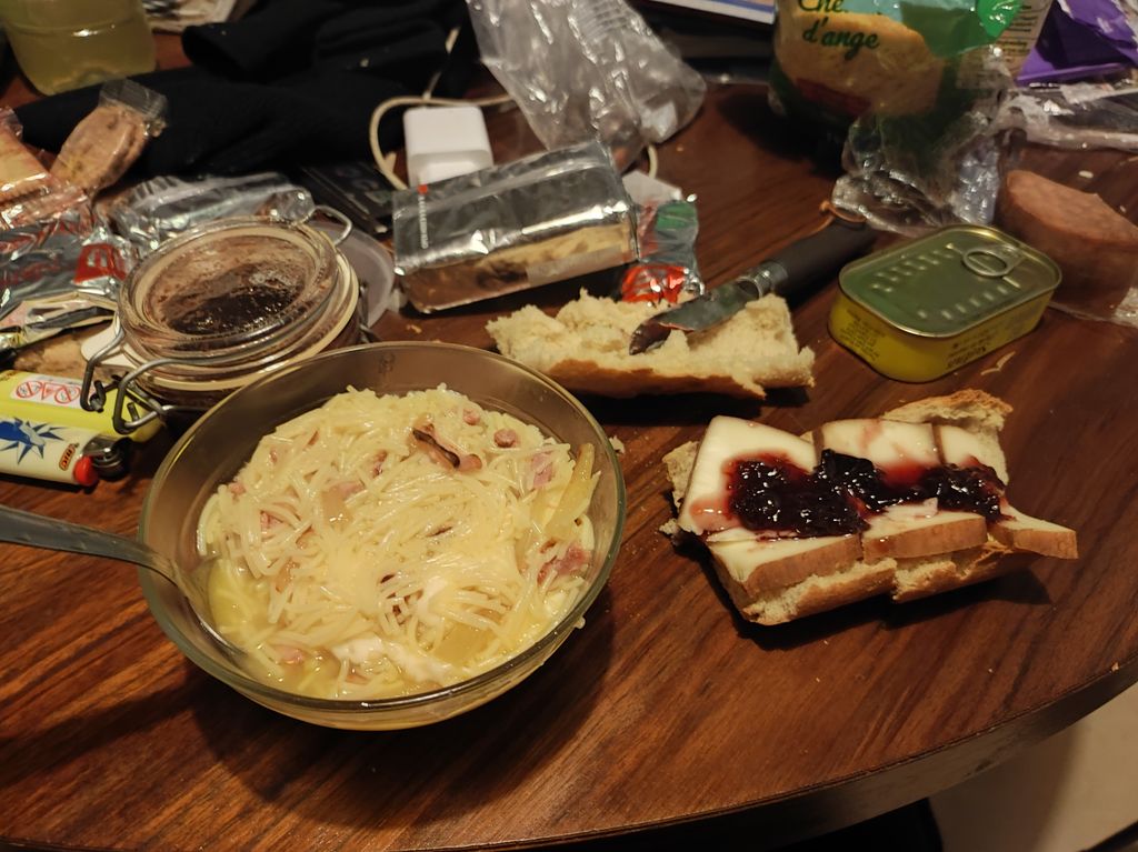 J'attends tranquillou qu'on soit demain pour continuer ma route... En attendant, j'ai bien mangé, je suis en sécurité, et j'ai bien chaud dans mon duvet