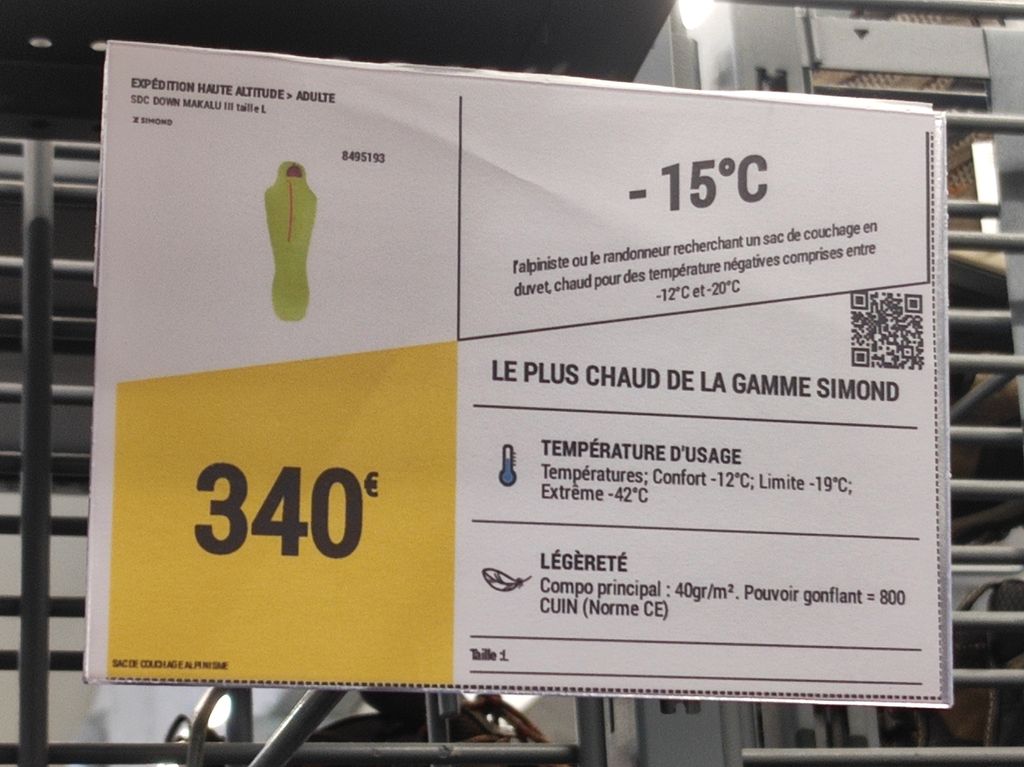 J'ai pris le sac de couchage avec les meilleures statistiques disponible en magasin à l'instant T