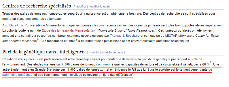 A part pour les vrais débiles, le qi n est pas inné . Le cerveau va se moduler dès le plus jeune âge en fonction de l apprentissage et de la sollicitation qu il reçoit.