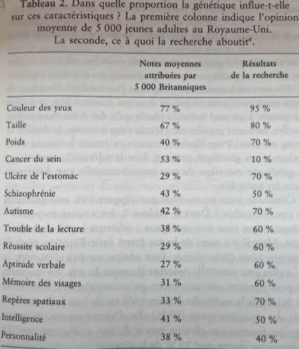 50% d'inné entre frères et sœurs, 80% entre jumeaux homozygotes à peu près, en dépit de la rage des gauchistes. Donc même avec l'éducation on a chacun une base génétique et un plafond de verre indépassable.