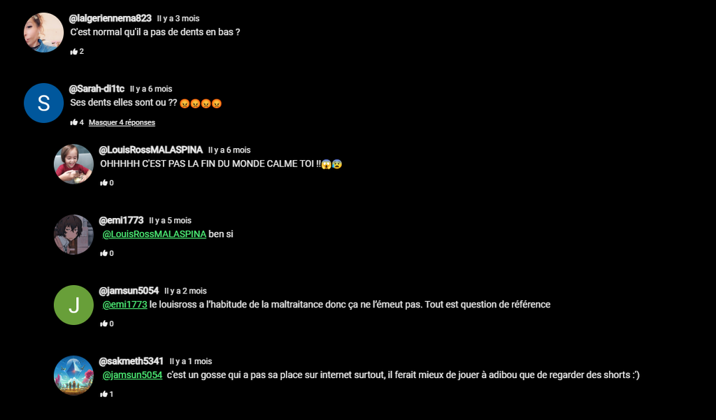 J'ai jamais dit que le gamin avait arraché les dents du chat j'ai juste dit que c'est dans l’espace commentaire de la vidéo du chat que je suis tombé sur la chaine du gamin.