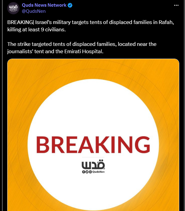 L'armée israélienne cible les tentes de familles déplacées à Rafah, tuant au moins 9 civils.