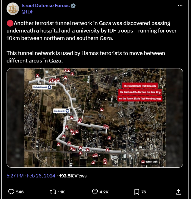 Un autre réseau de tunnels terroristes à Gaza a été découvert passant sous un hôpital et une université par les troupes de Tsahal, s'étendant sur plus de 10 km entre le nord et le sud de Gaza.