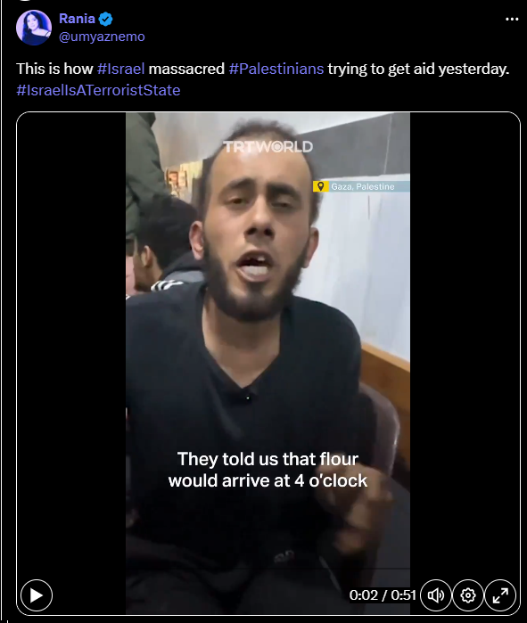 C’est ainsi qu’#Israël a massacré hier les #Palestiniens qui tentaient d’obtenir de l’aide. #IsraelIsATerroristState