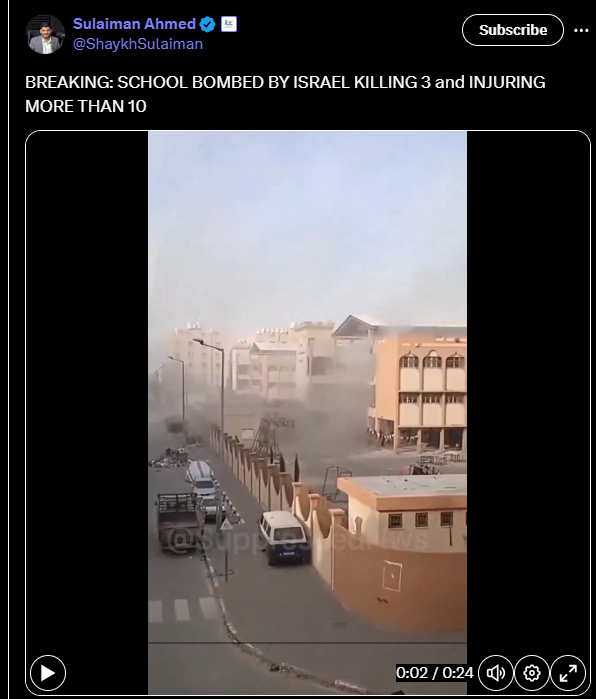 UNE ÉCOLE BOMBARDÉE PAR ISRAËL FAIT 3 MORTS ET PLUS DE 10 BLESSÉS.