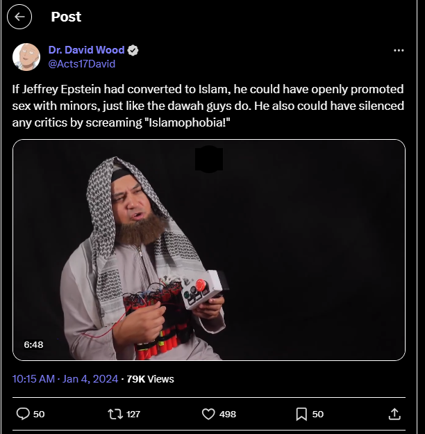 Si Jeffrey Epstein s’était converti à l’islam, il aurait pu ouvertement promouvoir les relations sexuelles avec des mineurs, tout comme le font les gars de la Dawah. Il aurait également pu faire taire les critiques en criant « islamophobie ! »