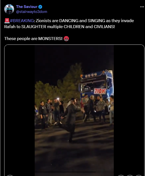 Les sionistes DANSENT et CHANTENT alors qu'ils envahissent Rafah pour massacrer plusieurs ENFANTS et CIVILS !
