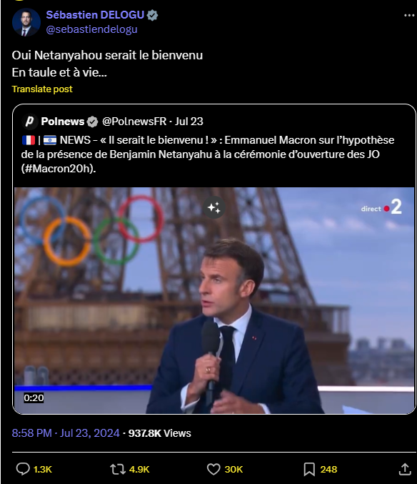 🇫🇷 | 🇮🇱 NEWS - « Il serait le bienvenu ! » : Emmanuel Macron sur l’hypothèse de la présence de Benjamin Netanyahu à la cérémonie d’ouverture des JO (#Macron20h).