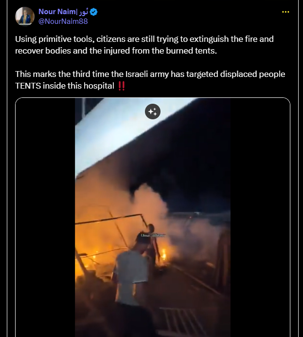 C'est la troisième fois que l'armée israélienne cible des personnes déplacées. TENTES à l'intérieur de cet hôpital