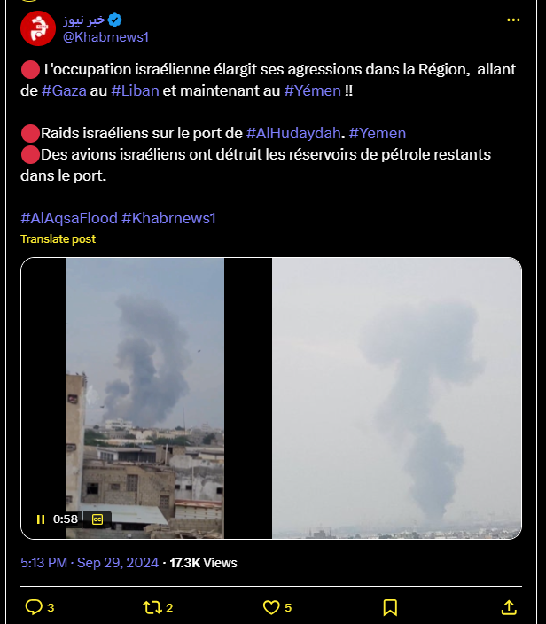 🔴 L'occupation israélienne élargit ses agressions dans la Région, allant de #Gaza au #Liban et maintenant au #Yémen !!