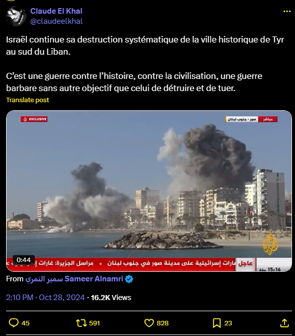 Israël continue sa destruction systématique de la ville historique de Tyr au sud du Liban.