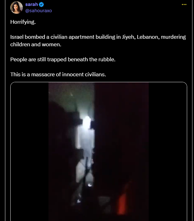 Israël a bombardé un immeuble civil à Jiyeh, au Liban, tuant des enfants et des femmes.