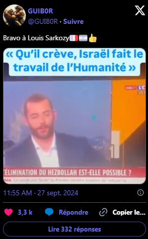 Après le Liban et le Yémen, Netanyahu entre en guerre avec l’Iran. C'est son plan depuis des mois avec les divers assassinats. La France n'a rien à faire dans cette escalade. Netanyahu plonge toute la région dans la guerre totale. Il expose la population d'Israël aux pires