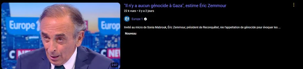 "Il n'y a aucun génocide à Gaza", estime Éric Zemmour