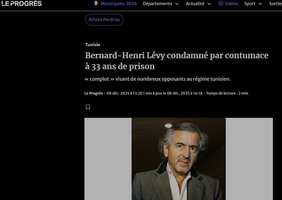 Bernard-Henri Lévy condamné par contumace à 33 ans de prison