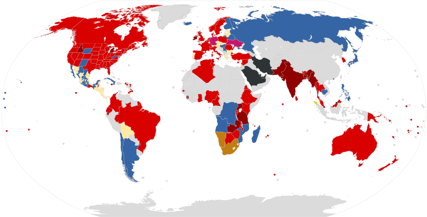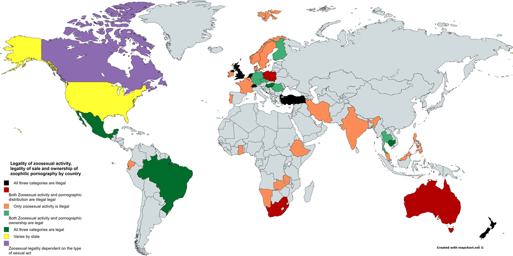 Carte des pays interdisant/autorisant la zoophilie