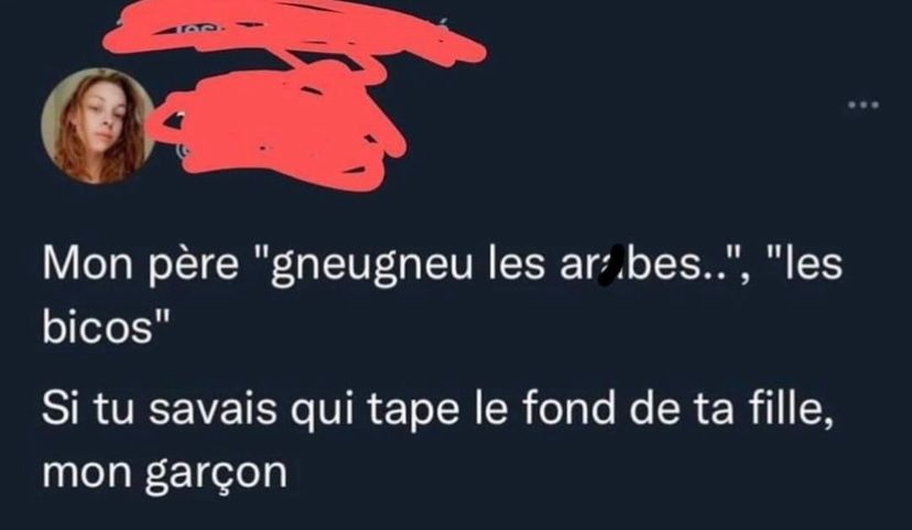 Osef qu'elle baise des arabes, moi ma fille me parle comme ça je la tue